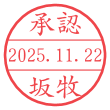 オプションの「電子透かし」をチェックし[生成]すると、見た目には分からないように、UNIXタイムスタンプを識別情報としてPNG形式の日付印に埋め込みます。 日付スタンプメーカーの使い方「部署」「名前」は最大8文字まで入力が可能です。「スタンプの色」を選択し、[生成]ボタン押下で印影画像が更新され、背景を透明に設定したPNG形式とPDF形式の印影画像がリンクからダウンロードできます。 オプションの「電子透かし」は、その性格上日付印ととても相性の良い付加サービスです。 別ページの「タイムスタンプと電子透かし」でも詳しく解説しますが、このオプションを追加することで、日付印が生成された日時に確かにその印が存在していることが証明されます。 ![]() 坂牧さんの電子印鑑が作れます。社内でのデータ書類閲覧確認用など、認印的な使い方のできる電子印鑑が作れます。 ![]() 古代文字で落款印が作れます。「落款スタンプメーカー」で作品を引き立たせる落款印が作れます。