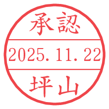 オプションの「電子透かし」をチェックし[生成]すると、見た目には分からないように、UNIXタイムスタンプを識別情報としてPNG形式の日付印に埋め込みます。 日付スタンプメーカーの使い方「部署」「名前」は最大8文字まで入力が可能です。「スタンプの色」を選択し、[生成]ボタン押下で印影画像が更新され、背景を透明に設定したPNG形式とPDF形式の印影画像がリンクからダウンロードできます。 オプションの「電子透かし」は、その性格上日付印ととても相性の良い付加サービスです。 別ページの「タイムスタンプと電子透かし」でも詳しく解説しますが、このオプションを追加することで、日付印が生成された日時に確かにその印が存在していることが証明されます。 ![]() 坪山さんの電子印鑑が作れます。社内でのデータ書類閲覧確認用など、認印的な使い方のできる電子印鑑が作れます。 ![]() 古代文字で落款印が作れます。「落款スタンプメーカー」で作品を引き立たせる落款印が作れます。