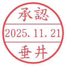 オプションの「電子透かし」をチェックし[生成]すると、見た目には分からないように、UNIXタイムスタンプを識別情報としてPNG形式の日付印に埋め込みます。 日付スタンプメーカーの使い方「部署」「名前」は最大8文字まで入力が可能です。「スタンプの色」を選択し、[生成]ボタン押下で印影画像が更新され、背景を透明に設定したPNG形式とPDF形式の印影画像がリンクからダウンロードできます。 オプションの「電子透かし」は、その性格上日付印ととても相性の良い付加サービスです。 別ページの「タイムスタンプと電子透かし」でも詳しく解説しますが、このオプションを追加することで、日付印が生成された日時に確かにその印が存在していることが証明されます。 ![]() 垂井さんの電子印鑑が作れます。社内でのデータ書類閲覧確認用など、認印的な使い方のできる電子印鑑が作れます。 ![]() 古代文字で落款印が作れます。「落款スタンプメーカー」で作品を引き立たせる落款印が作れます。