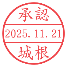 オプションの「電子透かし」をチェックし[生成]すると、見た目には分からないように、UNIXタイムスタンプを識別情報としてPNG形式の日付印に埋め込みます。 日付スタンプメーカーの使い方「部署」「名前」は最大8文字まで入力が可能です。「スタンプの色」を選択し、[生成]ボタン押下で印影画像が更新され、背景を透明に設定したPNG形式とPDF形式の印影画像がリンクからダウンロードできます。 オプションの「電子透かし」は、その性格上日付印ととても相性の良い付加サービスです。 別ページの「タイムスタンプと電子透かし」でも詳しく解説しますが、このオプションを追加することで、日付印が生成された日時に確かにその印が存在していることが証明されます。 ![]() 城根さんの電子印鑑が作れます。社内でのデータ書類閲覧確認用など、認印的な使い方のできる電子印鑑が作れます。 ![]() 古代文字で落款印が作れます。「落款スタンプメーカー」で作品を引き立たせる落款印が作れます。