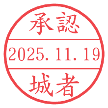 オプションの「電子透かし」をチェックし[生成]すると、見た目には分からないように、UNIXタイムスタンプを識別情報としてPNG形式の日付印に埋め込みます。 日付スタンプメーカーの使い方「部署」「名前」は最大8文字まで入力が可能です。「スタンプの色」を選択し、[生成]ボタン押下で印影画像が更新され、背景を透明に設定したPNG形式とPDF形式の印影画像がリンクからダウンロードできます。 オプションの「電子透かし」は、その性格上日付印ととても相性の良い付加サービスです。 別ページの「タイムスタンプと電子透かし」でも詳しく解説しますが、このオプションを追加することで、日付印が生成された日時に確かにその印が存在していることが証明されます。 ![]() 城者さんの電子印鑑が作れます。社内でのデータ書類閲覧確認用など、認印的な使い方のできる電子印鑑が作れます。 ![]() 古代文字で落款印が作れます。「落款スタンプメーカー」で作品を引き立たせる落款印が作れます。