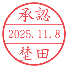 オプションの「電子透かし」をチェックし[生成]すると、見た目には分からないように、UNIXタイムスタンプを識別情報としてPNG形式の日付印に埋め込みます。 日付スタンプメーカーの使い方「部署」「名前」は最大8文字まで入力が可能です。「スタンプの色」を選択し、[生成]ボタン押下で印影画像が更新され、背景を透明に設定したPNG形式とPDF形式の印影画像がリンクからダウンロードできます。 オプションの「電子透かし」は、その性格上日付印ととても相性の良い付加サービスです。 別ページの「タイムスタンプと電子透かし」でも詳しく解説しますが、このオプションを追加することで、日付印が生成された日時に確かにその印が存在していることが証明されます。 ![]() 埜田さんの電子印鑑が作れます。社内でのデータ書類閲覧確認用など、認印的な使い方のできる電子印鑑が作れます。 ![]() 古代文字で落款印が作れます。「落款スタンプメーカー」で作品を引き立たせる落款印が作れます。