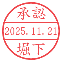 オプションの「電子透かし」をチェックし[生成]すると、見た目には分からないように、UNIXタイムスタンプを識別情報としてPNG形式の日付印に埋め込みます。 日付スタンプメーカーの使い方「部署」「名前」は最大8文字まで入力が可能です。「スタンプの色」を選択し、[生成]ボタン押下で印影画像が更新され、背景を透明に設定したPNG形式とPDF形式の印影画像がリンクからダウンロードできます。 オプションの「電子透かし」は、その性格上日付印ととても相性の良い付加サービスです。 別ページの「タイムスタンプと電子透かし」でも詳しく解説しますが、このオプションを追加することで、日付印が生成された日時に確かにその印が存在していることが証明されます。 ![]() 堀下さんの電子印鑑が作れます。社内でのデータ書類閲覧確認用など、認印的な使い方のできる電子印鑑が作れます。 ![]() 古代文字で落款印が作れます。「落款スタンプメーカー」で作品を引き立たせる落款印が作れます。