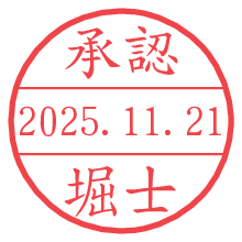 オプションの「電子透かし」をチェックし[生成]すると、見た目には分からないように、UNIXタイムスタンプを識別情報としてPNG形式の日付印に埋め込みます。 日付スタンプメーカーの使い方「部署」「名前」は最大8文字まで入力が可能です。「スタンプの色」を選択し、[生成]ボタン押下で印影画像が更新され、背景を透明に設定したPNG形式とPDF形式の印影画像がリンクからダウンロードできます。 オプションの「電子透かし」は、その性格上日付印ととても相性の良い付加サービスです。 別ページの「タイムスタンプと電子透かし」でも詳しく解説しますが、このオプションを追加することで、日付印が生成された日時に確かにその印が存在していることが証明されます。 ![]() 堀士さんの電子印鑑が作れます。社内でのデータ書類閲覧確認用など、認印的な使い方のできる電子印鑑が作れます。 ![]() 古代文字で落款印が作れます。「落款スタンプメーカー」で作品を引き立たせる落款印が作れます。