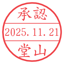 オプションの「電子透かし」をチェックし[生成]すると、見た目には分からないように、UNIXタイムスタンプを識別情報としてPNG形式の日付印に埋め込みます。 日付スタンプメーカーの使い方「部署」「名前」は最大8文字まで入力が可能です。「スタンプの色」を選択し、[生成]ボタン押下で印影画像が更新され、背景を透明に設定したPNG形式とPDF形式の印影画像がリンクからダウンロードできます。 オプションの「電子透かし」は、その性格上日付印ととても相性の良い付加サービスです。 別ページの「タイムスタンプと電子透かし」でも詳しく解説しますが、このオプションを追加することで、日付印が生成された日時に確かにその印が存在していることが証明されます。 ![]() 堂山さんの電子印鑑が作れます。社内でのデータ書類閲覧確認用など、認印的な使い方のできる電子印鑑が作れます。 ![]() 古代文字で落款印が作れます。「落款スタンプメーカー」で作品を引き立たせる落款印が作れます。