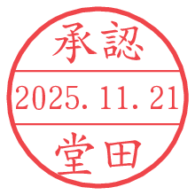 オプションの「電子透かし」をチェックし[生成]すると、見た目には分からないように、UNIXタイムスタンプを識別情報としてPNG形式の日付印に埋め込みます。 日付スタンプメーカーの使い方「部署」「名前」は最大8文字まで入力が可能です。「スタンプの色」を選択し、[生成]ボタン押下で印影画像が更新され、背景を透明に設定したPNG形式とPDF形式の印影画像がリンクからダウンロードできます。 オプションの「電子透かし」は、その性格上日付印ととても相性の良い付加サービスです。 別ページの「タイムスタンプと電子透かし」でも詳しく解説しますが、このオプションを追加することで、日付印が生成された日時に確かにその印が存在していることが証明されます。 ![]() 堂田さんの電子印鑑が作れます。社内でのデータ書類閲覧確認用など、認印的な使い方のできる電子印鑑が作れます。 ![]() 古代文字で落款印が作れます。「落款スタンプメーカー」で作品を引き立たせる落款印が作れます。