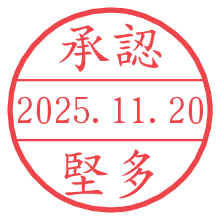 オプションの「電子透かし」をチェックし[生成]すると、見た目には分からないように、UNIXタイムスタンプを識別情報としてPNG形式の日付印に埋め込みます。 日付スタンプメーカーの使い方「部署」「名前」は最大8文字まで入力が可能です。「スタンプの色」を選択し、[生成]ボタン押下で印影画像が更新され、背景を透明に設定したPNG形式とPDF形式の印影画像がリンクからダウンロードできます。 オプションの「電子透かし」は、その性格上日付印ととても相性の良い付加サービスです。 別ページの「タイムスタンプと電子透かし」でも詳しく解説しますが、このオプションを追加することで、日付印が生成された日時に確かにその印が存在していることが証明されます。 ![]() 堅多さんの電子印鑑が作れます。社内でのデータ書類閲覧確認用など、認印的な使い方のできる電子印鑑が作れます。 ![]() 古代文字で落款印が作れます。「落款スタンプメーカー」で作品を引き立たせる落款印が作れます。