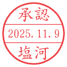 オプションの「電子透かし」をチェックし[生成]すると、見た目には分からないように、UNIXタイムスタンプを識別情報としてPNG形式の日付印に埋め込みます。 日付スタンプメーカーの使い方「部署」「名前」は最大8文字まで入力が可能です。「スタンプの色」を選択し、[生成]ボタン押下で印影画像が更新され、背景を透明に設定したPNG形式とPDF形式の印影画像がリンクからダウンロードできます。 オプションの「電子透かし」は、その性格上日付印ととても相性の良い付加サービスです。 別ページの「タイムスタンプと電子透かし」でも詳しく解説しますが、このオプションを追加することで、日付印が生成された日時に確かにその印が存在していることが証明されます。 ![]() 塩河さんの電子印鑑が作れます。社内でのデータ書類閲覧確認用など、認印的な使い方のできる電子印鑑が作れます。 ![]() 古代文字で落款印が作れます。「落款スタンプメーカー」で作品を引き立たせる落款印が作れます。