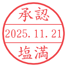 オプションの「電子透かし」をチェックし[生成]すると、見た目には分からないように、UNIXタイムスタンプを識別情報としてPNG形式の日付印に埋め込みます。 日付スタンプメーカーの使い方「部署」「名前」は最大8文字まで入力が可能です。「スタンプの色」を選択し、[生成]ボタン押下で印影画像が更新され、背景を透明に設定したPNG形式とPDF形式の印影画像がリンクからダウンロードできます。 オプションの「電子透かし」は、その性格上日付印ととても相性の良い付加サービスです。 別ページの「タイムスタンプと電子透かし」でも詳しく解説しますが、このオプションを追加することで、日付印が生成された日時に確かにその印が存在していることが証明されます。 ![]() 塩満さんの電子印鑑が作れます。社内でのデータ書類閲覧確認用など、認印的な使い方のできる電子印鑑が作れます。 ![]() 古代文字で落款印が作れます。「落款スタンプメーカー」で作品を引き立たせる落款印が作れます。