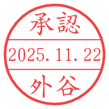 オプションの「電子透かし」をチェックし[生成]すると、見た目には分からないように、UNIXタイムスタンプを識別情報としてPNG形式の日付印に埋め込みます。 日付スタンプメーカーの使い方「部署」「名前」は最大8文字まで入力が可能です。「スタンプの色」を選択し、[生成]ボタン押下で印影画像が更新され、背景を透明に設定したPNG形式とPDF形式の印影画像がリンクからダウンロードできます。 オプションの「電子透かし」は、その性格上日付印ととても相性の良い付加サービスです。 別ページの「タイムスタンプと電子透かし」でも詳しく解説しますが、このオプションを追加することで、日付印が生成された日時に確かにその印が存在していることが証明されます。 ![]() 外谷さんの電子印鑑が作れます。社内でのデータ書類閲覧確認用など、認印的な使い方のできる電子印鑑が作れます。 ![]() 古代文字で落款印が作れます。「落款スタンプメーカー」で作品を引き立たせる落款印が作れます。