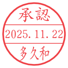 オプションの「電子透かし」をチェックし[生成]すると、見た目には分からないように、UNIXタイムスタンプを識別情報としてPNG形式の日付印に埋め込みます。 日付スタンプメーカーの使い方「部署」「名前」は最大8文字まで入力が可能です。「スタンプの色」を選択し、[生成]ボタン押下で印影画像が更新され、背景を透明に設定したPNG形式とPDF形式の印影画像がリンクからダウンロードできます。 オプションの「電子透かし」は、その性格上日付印ととても相性の良い付加サービスです。 別ページの「タイムスタンプと電子透かし」でも詳しく解説しますが、このオプションを追加することで、日付印が生成された日時に確かにその印が存在していることが証明されます。 ![]() 多久和さんの電子印鑑が作れます。社内でのデータ書類閲覧確認用など、認印的な使い方のできる電子印鑑が作れます。 ![]() 古代文字で落款印が作れます。「落款スタンプメーカー」で作品を引き立たせる落款印が作れます。