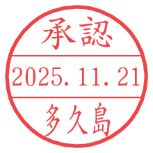 オプションの「電子透かし」をチェックし[生成]すると、見た目には分からないように、UNIXタイムスタンプを識別情報としてPNG形式の日付印に埋め込みます。 日付スタンプメーカーの使い方「部署」「名前」は最大8文字まで入力が可能です。「スタンプの色」を選択し、[生成]ボタン押下で印影画像が更新され、背景を透明に設定したPNG形式とPDF形式の印影画像がリンクからダウンロードできます。 オプションの「電子透かし」は、その性格上日付印ととても相性の良い付加サービスです。 別ページの「タイムスタンプと電子透かし」でも詳しく解説しますが、このオプションを追加することで、日付印が生成された日時に確かにその印が存在していることが証明されます。 ![]() 多久島さんの電子印鑑が作れます。社内でのデータ書類閲覧確認用など、認印的な使い方のできる電子印鑑が作れます。 ![]() 古代文字で落款印が作れます。「落款スタンプメーカー」で作品を引き立たせる落款印が作れます。