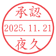 オプションの「電子透かし」をチェックし[生成]すると、見た目には分からないように、UNIXタイムスタンプを識別情報としてPNG形式の日付印に埋め込みます。 日付スタンプメーカーの使い方「部署」「名前」は最大8文字まで入力が可能です。「スタンプの色」を選択し、[生成]ボタン押下で印影画像が更新され、背景を透明に設定したPNG形式とPDF形式の印影画像がリンクからダウンロードできます。 オプションの「電子透かし」は、その性格上日付印ととても相性の良い付加サービスです。 別ページの「タイムスタンプと電子透かし」でも詳しく解説しますが、このオプションを追加することで、日付印が生成された日時に確かにその印が存在していることが証明されます。 ![]() 夜久さんの電子印鑑が作れます。社内でのデータ書類閲覧確認用など、認印的な使い方のできる電子印鑑が作れます。 ![]() 古代文字で落款印が作れます。「落款スタンプメーカー」で作品を引き立たせる落款印が作れます。