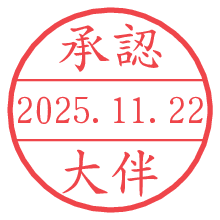 オプションの「電子透かし」をチェックし[生成]すると、見た目には分からないように、UNIXタイムスタンプを識別情報としてPNG形式の日付印に埋め込みます。 日付スタンプメーカーの使い方「部署」「名前」は最大8文字まで入力が可能です。「スタンプの色」を選択し、[生成]ボタン押下で印影画像が更新され、背景を透明に設定したPNG形式とPDF形式の印影画像がリンクからダウンロードできます。 オプションの「電子透かし」は、その性格上日付印ととても相性の良い付加サービスです。 別ページの「タイムスタンプと電子透かし」でも詳しく解説しますが、このオプションを追加することで、日付印が生成された日時に確かにその印が存在していることが証明されます。 ![]() 大伴さんの電子印鑑が作れます。社内でのデータ書類閲覧確認用など、認印的な使い方のできる電子印鑑が作れます。 ![]() 古代文字で落款印が作れます。「落款スタンプメーカー」で作品を引き立たせる落款印が作れます。