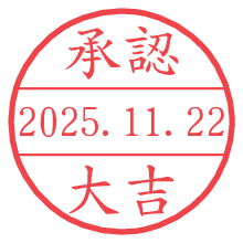 オプションの「電子透かし」をチェックし[生成]すると、見た目には分からないように、UNIXタイムスタンプを識別情報としてPNG形式の日付印に埋め込みます。 日付スタンプメーカーの使い方「部署」「名前」は最大8文字まで入力が可能です。「スタンプの色」を選択し、[生成]ボタン押下で印影画像が更新され、背景を透明に設定したPNG形式とPDF形式の印影画像がリンクからダウンロードできます。 オプションの「電子透かし」は、その性格上日付印ととても相性の良い付加サービスです。 別ページの「タイムスタンプと電子透かし」でも詳しく解説しますが、このオプションを追加することで、日付印が生成された日時に確かにその印が存在していることが証明されます。 ![]() 大吉さんの電子印鑑が作れます。社内でのデータ書類閲覧確認用など、認印的な使い方のできる電子印鑑が作れます。 ![]() 古代文字で落款印が作れます。「落款スタンプメーカー」で作品を引き立たせる落款印が作れます。