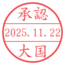オプションの「電子透かし」をチェックし[生成]すると、見た目には分からないように、UNIXタイムスタンプを識別情報としてPNG形式の日付印に埋め込みます。 日付スタンプメーカーの使い方「部署」「名前」は最大8文字まで入力が可能です。「スタンプの色」を選択し、[生成]ボタン押下で印影画像が更新され、背景を透明に設定したPNG形式とPDF形式の印影画像がリンクからダウンロードできます。 オプションの「電子透かし」は、その性格上日付印ととても相性の良い付加サービスです。 別ページの「タイムスタンプと電子透かし」でも詳しく解説しますが、このオプションを追加することで、日付印が生成された日時に確かにその印が存在していることが証明されます。 ![]() 大国さんの電子印鑑が作れます。社内でのデータ書類閲覧確認用など、認印的な使い方のできる電子印鑑が作れます。 ![]() 古代文字で落款印が作れます。「落款スタンプメーカー」で作品を引き立たせる落款印が作れます。