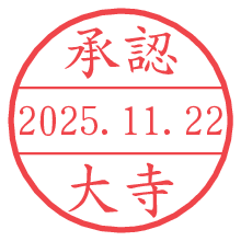 オプションの「電子透かし」をチェックし[生成]すると、見た目には分からないように、UNIXタイムスタンプを識別情報としてPNG形式の日付印に埋め込みます。 日付スタンプメーカーの使い方「部署」「名前」は最大8文字まで入力が可能です。「スタンプの色」を選択し、[生成]ボタン押下で印影画像が更新され、背景を透明に設定したPNG形式とPDF形式の印影画像がリンクからダウンロードできます。 オプションの「電子透かし」は、その性格上日付印ととても相性の良い付加サービスです。 別ページの「タイムスタンプと電子透かし」でも詳しく解説しますが、このオプションを追加することで、日付印が生成された日時に確かにその印が存在していることが証明されます。 ![]() 大寺さんの電子印鑑が作れます。社内でのデータ書類閲覧確認用など、認印的な使い方のできる電子印鑑が作れます。 ![]() 古代文字で落款印が作れます。「落款スタンプメーカー」で作品を引き立たせる落款印が作れます。