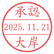 オプションの「電子透かし」をチェックし[生成]すると、見た目には分からないように、UNIXタイムスタンプを識別情報としてPNG形式の日付印に埋め込みます。 日付スタンプメーカーの使い方「部署」「名前」は最大8文字まで入力が可能です。「スタンプの色」を選択し、[生成]ボタン押下で印影画像が更新され、背景を透明に設定したPNG形式とPDF形式の印影画像がリンクからダウンロードできます。 オプションの「電子透かし」は、その性格上日付印ととても相性の良い付加サービスです。 別ページの「タイムスタンプと電子透かし」でも詳しく解説しますが、このオプションを追加することで、日付印が生成された日時に確かにその印が存在していることが証明されます。 ![]() 大岸さんの電子印鑑が作れます。社内でのデータ書類閲覧確認用など、認印的な使い方のできる電子印鑑が作れます。 ![]() 古代文字で落款印が作れます。「落款スタンプメーカー」で作品を引き立たせる落款印が作れます。