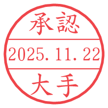 オプションの「電子透かし」をチェックし[生成]すると、見た目には分からないように、UNIXタイムスタンプを識別情報としてPNG形式の日付印に埋め込みます。 日付スタンプメーカーの使い方「部署」「名前」は最大8文字まで入力が可能です。「スタンプの色」を選択し、[生成]ボタン押下で印影画像が更新され、背景を透明に設定したPNG形式とPDF形式の印影画像がリンクからダウンロードできます。 オプションの「電子透かし」は、その性格上日付印ととても相性の良い付加サービスです。 別ページの「タイムスタンプと電子透かし」でも詳しく解説しますが、このオプションを追加することで、日付印が生成された日時に確かにその印が存在していることが証明されます。 ![]() 大手さんの電子印鑑が作れます。社内でのデータ書類閲覧確認用など、認印的な使い方のできる電子印鑑が作れます。 ![]() 古代文字で落款印が作れます。「落款スタンプメーカー」で作品を引き立たせる落款印が作れます。