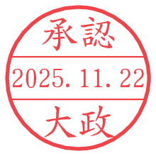 オプションの「電子透かし」をチェックし[生成]すると、見た目には分からないように、UNIXタイムスタンプを識別情報としてPNG形式の日付印に埋め込みます。 日付スタンプメーカーの使い方「部署」「名前」は最大8文字まで入力が可能です。「スタンプの色」を選択し、[生成]ボタン押下で印影画像が更新され、背景を透明に設定したPNG形式とPDF形式の印影画像がリンクからダウンロードできます。 オプションの「電子透かし」は、その性格上日付印ととても相性の良い付加サービスです。 別ページの「タイムスタンプと電子透かし」でも詳しく解説しますが、このオプションを追加することで、日付印が生成された日時に確かにその印が存在していることが証明されます。 ![]() 大政さんの電子印鑑が作れます。社内でのデータ書類閲覧確認用など、認印的な使い方のできる電子印鑑が作れます。 ![]() 古代文字で落款印が作れます。「落款スタンプメーカー」で作品を引き立たせる落款印が作れます。