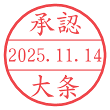 オプションの「電子透かし」をチェックし[生成]すると、見た目には分からないように、UNIXタイムスタンプを識別情報としてPNG形式の日付印に埋め込みます。 日付スタンプメーカーの使い方「部署」「名前」は最大8文字まで入力が可能です。「スタンプの色」を選択し、[生成]ボタン押下で印影画像が更新され、背景を透明に設定したPNG形式とPDF形式の印影画像がリンクからダウンロードできます。 オプションの「電子透かし」は、その性格上日付印ととても相性の良い付加サービスです。 別ページの「タイムスタンプと電子透かし」でも詳しく解説しますが、このオプションを追加することで、日付印が生成された日時に確かにその印が存在していることが証明されます。 ![]() 大条さんの電子印鑑が作れます。社内でのデータ書類閲覧確認用など、認印的な使い方のできる電子印鑑が作れます。 ![]() 古代文字で落款印が作れます。「落款スタンプメーカー」で作品を引き立たせる落款印が作れます。