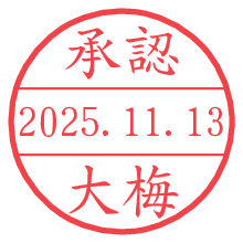 オプションの「電子透かし」をチェックし[生成]すると、見た目には分からないように、UNIXタイムスタンプを識別情報としてPNG形式の日付印に埋め込みます。 日付スタンプメーカーの使い方「部署」「名前」は最大8文字まで入力が可能です。「スタンプの色」を選択し、[生成]ボタン押下で印影画像が更新され、背景を透明に設定したPNG形式とPDF形式の印影画像がリンクからダウンロードできます。 オプションの「電子透かし」は、その性格上日付印ととても相性の良い付加サービスです。 別ページの「タイムスタンプと電子透かし」でも詳しく解説しますが、このオプションを追加することで、日付印が生成された日時に確かにその印が存在していることが証明されます。 ![]() 大梅さんの電子印鑑が作れます。社内でのデータ書類閲覧確認用など、認印的な使い方のできる電子印鑑が作れます。 ![]() 古代文字で落款印が作れます。「落款スタンプメーカー」で作品を引き立たせる落款印が作れます。