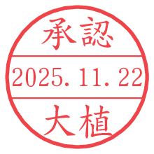 オプションの「電子透かし」をチェックし[生成]すると、見た目には分からないように、UNIXタイムスタンプを識別情報としてPNG形式の日付印に埋め込みます。 日付スタンプメーカーの使い方「部署」「名前」は最大8文字まで入力が可能です。「スタンプの色」を選択し、[生成]ボタン押下で印影画像が更新され、背景を透明に設定したPNG形式とPDF形式の印影画像がリンクからダウンロードできます。 オプションの「電子透かし」は、その性格上日付印ととても相性の良い付加サービスです。 別ページの「タイムスタンプと電子透かし」でも詳しく解説しますが、このオプションを追加することで、日付印が生成された日時に確かにその印が存在していることが証明されます。 ![]() 大植さんの電子印鑑が作れます。社内でのデータ書類閲覧確認用など、認印的な使い方のできる電子印鑑が作れます。 ![]() 古代文字で落款印が作れます。「落款スタンプメーカー」で作品を引き立たせる落款印が作れます。