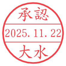 オプションの「電子透かし」をチェックし[生成]すると、見た目には分からないように、UNIXタイムスタンプを識別情報としてPNG形式の日付印に埋め込みます。 日付スタンプメーカーの使い方「部署」「名前」は最大8文字まで入力が可能です。「スタンプの色」を選択し、[生成]ボタン押下で印影画像が更新され、背景を透明に設定したPNG形式とPDF形式の印影画像がリンクからダウンロードできます。 オプションの「電子透かし」は、その性格上日付印ととても相性の良い付加サービスです。 別ページの「タイムスタンプと電子透かし」でも詳しく解説しますが、このオプションを追加することで、日付印が生成された日時に確かにその印が存在していることが証明されます。 ![]() 大水さんの電子印鑑が作れます。社内でのデータ書類閲覧確認用など、認印的な使い方のできる電子印鑑が作れます。 ![]() 古代文字で落款印が作れます。「落款スタンプメーカー」で作品を引き立たせる落款印が作れます。