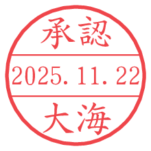 オプションの「電子透かし」をチェックし[生成]すると、見た目には分からないように、UNIXタイムスタンプを識別情報としてPNG形式の日付印に埋め込みます。 日付スタンプメーカーの使い方「部署」「名前」は最大8文字まで入力が可能です。「スタンプの色」を選択し、[生成]ボタン押下で印影画像が更新され、背景を透明に設定したPNG形式とPDF形式の印影画像がリンクからダウンロードできます。 オプションの「電子透かし」は、その性格上日付印ととても相性の良い付加サービスです。 別ページの「タイムスタンプと電子透かし」でも詳しく解説しますが、このオプションを追加することで、日付印が生成された日時に確かにその印が存在していることが証明されます。 ![]() 大海さんの電子印鑑が作れます。社内でのデータ書類閲覧確認用など、認印的な使い方のできる電子印鑑が作れます。 ![]() 古代文字で落款印が作れます。「落款スタンプメーカー」で作品を引き立たせる落款印が作れます。