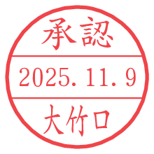 オプションの「電子透かし」をチェックし[生成]すると、見た目には分からないように、UNIXタイムスタンプを識別情報としてPNG形式の日付印に埋め込みます。 日付スタンプメーカーの使い方「部署」「名前」は最大8文字まで入力が可能です。「スタンプの色」を選択し、[生成]ボタン押下で印影画像が更新され、背景を透明に設定したPNG形式とPDF形式の印影画像がリンクからダウンロードできます。 オプションの「電子透かし」は、その性格上日付印ととても相性の良い付加サービスです。 別ページの「タイムスタンプと電子透かし」でも詳しく解説しますが、このオプションを追加することで、日付印が生成された日時に確かにその印が存在していることが証明されます。 ![]() 大竹口さんの電子印鑑が作れます。社内でのデータ書類閲覧確認用など、認印的な使い方のできる電子印鑑が作れます。 ![]() 古代文字で落款印が作れます。「落款スタンプメーカー」で作品を引き立たせる落款印が作れます。