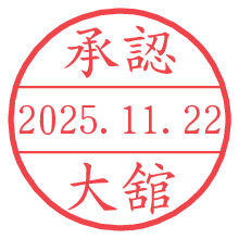 オプションの「電子透かし」をチェックし[生成]すると、見た目には分からないように、UNIXタイムスタンプを識別情報としてPNG形式の日付印に埋め込みます。 日付スタンプメーカーの使い方「部署」「名前」は最大8文字まで入力が可能です。「スタンプの色」を選択し、[生成]ボタン押下で印影画像が更新され、背景を透明に設定したPNG形式とPDF形式の印影画像がリンクからダウンロードできます。 オプションの「電子透かし」は、その性格上日付印ととても相性の良い付加サービスです。 別ページの「タイムスタンプと電子透かし」でも詳しく解説しますが、このオプションを追加することで、日付印が生成された日時に確かにその印が存在していることが証明されます。 ![]() 大舘さんの電子印鑑が作れます。社内でのデータ書類閲覧確認用など、認印的な使い方のできる電子印鑑が作れます。 ![]() 古代文字で落款印が作れます。「落款スタンプメーカー」で作品を引き立たせる落款印が作れます。
