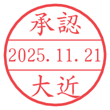オプションの「電子透かし」をチェックし[生成]すると、見た目には分からないように、UNIXタイムスタンプを識別情報としてPNG形式の日付印に埋め込みます。 日付スタンプメーカーの使い方「部署」「名前」は最大8文字まで入力が可能です。「スタンプの色」を選択し、[生成]ボタン押下で印影画像が更新され、背景を透明に設定したPNG形式とPDF形式の印影画像がリンクからダウンロードできます。 オプションの「電子透かし」は、その性格上日付印ととても相性の良い付加サービスです。 別ページの「タイムスタンプと電子透かし」でも詳しく解説しますが、このオプションを追加することで、日付印が生成された日時に確かにその印が存在していることが証明されます。 ![]() 大近さんの電子印鑑が作れます。社内でのデータ書類閲覧確認用など、認印的な使い方のできる電子印鑑が作れます。 ![]() 古代文字で落款印が作れます。「落款スタンプメーカー」で作品を引き立たせる落款印が作れます。