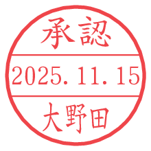 オプションの「電子透かし」をチェックし[生成]すると、見た目には分からないように、UNIXタイムスタンプを識別情報としてPNG形式の日付印に埋め込みます。 日付スタンプメーカーの使い方「部署」「名前」は最大8文字まで入力が可能です。「スタンプの色」を選択し、[生成]ボタン押下で印影画像が更新され、背景を透明に設定したPNG形式とPDF形式の印影画像がリンクからダウンロードできます。 オプションの「電子透かし」は、その性格上日付印ととても相性の良い付加サービスです。 別ページの「タイムスタンプと電子透かし」でも詳しく解説しますが、このオプションを追加することで、日付印が生成された日時に確かにその印が存在していることが証明されます。 ![]() 大野田さんの電子印鑑が作れます。社内でのデータ書類閲覧確認用など、認印的な使い方のできる電子印鑑が作れます。 ![]() 古代文字で落款印が作れます。「落款スタンプメーカー」で作品を引き立たせる落款印が作れます。