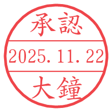 オプションの「電子透かし」をチェックし[生成]すると、見た目には分からないように、UNIXタイムスタンプを識別情報としてPNG形式の日付印に埋め込みます。 日付スタンプメーカーの使い方「部署」「名前」は最大8文字まで入力が可能です。「スタンプの色」を選択し、[生成]ボタン押下で印影画像が更新され、背景を透明に設定したPNG形式とPDF形式の印影画像がリンクからダウンロードできます。 オプションの「電子透かし」は、その性格上日付印ととても相性の良い付加サービスです。 別ページの「タイムスタンプと電子透かし」でも詳しく解説しますが、このオプションを追加することで、日付印が生成された日時に確かにその印が存在していることが証明されます。 ![]() 大鐘さんの電子印鑑が作れます。社内でのデータ書類閲覧確認用など、認印的な使い方のできる電子印鑑が作れます。 ![]() 古代文字で落款印が作れます。「落款スタンプメーカー」で作品を引き立たせる落款印が作れます。