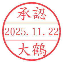 オプションの「電子透かし」をチェックし[生成]すると、見た目には分からないように、UNIXタイムスタンプを識別情報としてPNG形式の日付印に埋め込みます。 日付スタンプメーカーの使い方「部署」「名前」は最大8文字まで入力が可能です。「スタンプの色」を選択し、[生成]ボタン押下で印影画像が更新され、背景を透明に設定したPNG形式とPDF形式の印影画像がリンクからダウンロードできます。 オプションの「電子透かし」は、その性格上日付印ととても相性の良い付加サービスです。 別ページの「タイムスタンプと電子透かし」でも詳しく解説しますが、このオプションを追加することで、日付印が生成された日時に確かにその印が存在していることが証明されます。 ![]() 大鶴さんの電子印鑑が作れます。社内でのデータ書類閲覧確認用など、認印的な使い方のできる電子印鑑が作れます。 ![]() 古代文字で落款印が作れます。「落款スタンプメーカー」で作品を引き立たせる落款印が作れます。