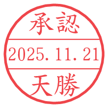 オプションの「電子透かし」をチェックし[生成]すると、見た目には分からないように、UNIXタイムスタンプを識別情報としてPNG形式の日付印に埋め込みます。 日付スタンプメーカーの使い方「部署」「名前」は最大8文字まで入力が可能です。「スタンプの色」を選択し、[生成]ボタン押下で印影画像が更新され、背景を透明に設定したPNG形式とPDF形式の印影画像がリンクからダウンロードできます。 オプションの「電子透かし」は、その性格上日付印ととても相性の良い付加サービスです。 別ページの「タイムスタンプと電子透かし」でも詳しく解説しますが、このオプションを追加することで、日付印が生成された日時に確かにその印が存在していることが証明されます。 ![]() 天勝さんの電子印鑑が作れます。社内でのデータ書類閲覧確認用など、認印的な使い方のできる電子印鑑が作れます。 ![]() 古代文字で落款印が作れます。「落款スタンプメーカー」で作品を引き立たせる落款印が作れます。