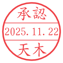 オプションの「電子透かし」をチェックし[生成]すると、見た目には分からないように、UNIXタイムスタンプを識別情報としてPNG形式の日付印に埋め込みます。 日付スタンプメーカーの使い方「部署」「名前」は最大8文字まで入力が可能です。「スタンプの色」を選択し、[生成]ボタン押下で印影画像が更新され、背景を透明に設定したPNG形式とPDF形式の印影画像がリンクからダウンロードできます。 オプションの「電子透かし」は、その性格上日付印ととても相性の良い付加サービスです。 別ページの「タイムスタンプと電子透かし」でも詳しく解説しますが、このオプションを追加することで、日付印が生成された日時に確かにその印が存在していることが証明されます。 ![]() 天木さんの電子印鑑が作れます。社内でのデータ書類閲覧確認用など、認印的な使い方のできる電子印鑑が作れます。 ![]() 古代文字で落款印が作れます。「落款スタンプメーカー」で作品を引き立たせる落款印が作れます。