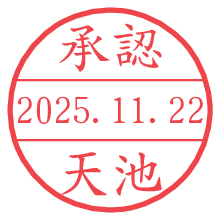 オプションの「電子透かし」をチェックし[生成]すると、見た目には分からないように、UNIXタイムスタンプを識別情報としてPNG形式の日付印に埋め込みます。 日付スタンプメーカーの使い方「部署」「名前」は最大8文字まで入力が可能です。「スタンプの色」を選択し、[生成]ボタン押下で印影画像が更新され、背景を透明に設定したPNG形式とPDF形式の印影画像がリンクからダウンロードできます。 オプションの「電子透かし」は、その性格上日付印ととても相性の良い付加サービスです。 別ページの「タイムスタンプと電子透かし」でも詳しく解説しますが、このオプションを追加することで、日付印が生成された日時に確かにその印が存在していることが証明されます。 ![]() 天池さんの電子印鑑が作れます。社内でのデータ書類閲覧確認用など、認印的な使い方のできる電子印鑑が作れます。 ![]() 古代文字で落款印が作れます。「落款スタンプメーカー」で作品を引き立たせる落款印が作れます。