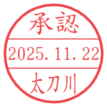 オプションの「電子透かし」をチェックし[生成]すると、見た目には分からないように、UNIXタイムスタンプを識別情報としてPNG形式の日付印に埋め込みます。 日付スタンプメーカーの使い方「部署」「名前」は最大8文字まで入力が可能です。「スタンプの色」を選択し、[生成]ボタン押下で印影画像が更新され、背景を透明に設定したPNG形式とPDF形式の印影画像がリンクからダウンロードできます。 オプションの「電子透かし」は、その性格上日付印ととても相性の良い付加サービスです。 別ページの「タイムスタンプと電子透かし」でも詳しく解説しますが、このオプションを追加することで、日付印が生成された日時に確かにその印が存在していることが証明されます。 ![]() 太刀川さんの電子印鑑が作れます。社内でのデータ書類閲覧確認用など、認印的な使い方のできる電子印鑑が作れます。 ![]() 古代文字で落款印が作れます。「落款スタンプメーカー」で作品を引き立たせる落款印が作れます。