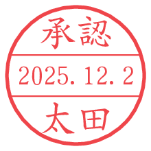 オプションの「電子透かし」をチェックし[生成]すると、見た目には分からないように、UNIXタイムスタンプを識別情報としてPNG形式の日付印に埋め込みます。 日付スタンプメーカーの使い方「部署」「名前」は最大8文字まで入力が可能です。「スタンプの色」を選択し、[生成]ボタン押下で印影画像が更新され、背景を透明に設定したPNG形式とPDF形式の印影画像がリンクからダウンロードできます。 オプションの「電子透かし」は、その性格上日付印ととても相性の良い付加サービスです。 別ページの「タイムスタンプと電子透かし」でも詳しく解説しますが、このオプションを追加することで、日付印が生成された日時に確かにその印が存在していることが証明されます。 ![]() 太田さんの電子印鑑が作れます。社内でのデータ書類閲覧確認用など、認印的な使い方のできる電子印鑑が作れます。 ![]() 古代文字で落款印が作れます。「落款スタンプメーカー」で作品を引き立たせる落款印が作れます。