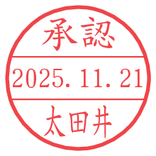 オプションの「電子透かし」をチェックし[生成]すると、見た目には分からないように、UNIXタイムスタンプを識別情報としてPNG形式の日付印に埋め込みます。 日付スタンプメーカーの使い方「部署」「名前」は最大8文字まで入力が可能です。「スタンプの色」を選択し、[生成]ボタン押下で印影画像が更新され、背景を透明に設定したPNG形式とPDF形式の印影画像がリンクからダウンロードできます。 オプションの「電子透かし」は、その性格上日付印ととても相性の良い付加サービスです。 別ページの「タイムスタンプと電子透かし」でも詳しく解説しますが、このオプションを追加することで、日付印が生成された日時に確かにその印が存在していることが証明されます。 ![]() 太田井さんの電子印鑑が作れます。社内でのデータ書類閲覧確認用など、認印的な使い方のできる電子印鑑が作れます。 ![]() 古代文字で落款印が作れます。「落款スタンプメーカー」で作品を引き立たせる落款印が作れます。