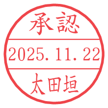 オプションの「電子透かし」をチェックし[生成]すると、見た目には分からないように、UNIXタイムスタンプを識別情報としてPNG形式の日付印に埋め込みます。 日付スタンプメーカーの使い方「部署」「名前」は最大8文字まで入力が可能です。「スタンプの色」を選択し、[生成]ボタン押下で印影画像が更新され、背景を透明に設定したPNG形式とPDF形式の印影画像がリンクからダウンロードできます。 オプションの「電子透かし」は、その性格上日付印ととても相性の良い付加サービスです。 別ページの「タイムスタンプと電子透かし」でも詳しく解説しますが、このオプションを追加することで、日付印が生成された日時に確かにその印が存在していることが証明されます。 ![]() 太田垣さんの電子印鑑が作れます。社内でのデータ書類閲覧確認用など、認印的な使い方のできる電子印鑑が作れます。 ![]() 古代文字で落款印が作れます。「落款スタンプメーカー」で作品を引き立たせる落款印が作れます。