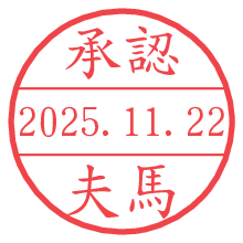 オプションの「電子透かし」をチェックし[生成]すると、見た目には分からないように、UNIXタイムスタンプを識別情報としてPNG形式の日付印に埋め込みます。 日付スタンプメーカーの使い方「部署」「名前」は最大8文字まで入力が可能です。「スタンプの色」を選択し、[生成]ボタン押下で印影画像が更新され、背景を透明に設定したPNG形式とPDF形式の印影画像がリンクからダウンロードできます。 オプションの「電子透かし」は、その性格上日付印ととても相性の良い付加サービスです。 別ページの「タイムスタンプと電子透かし」でも詳しく解説しますが、このオプションを追加することで、日付印が生成された日時に確かにその印が存在していることが証明されます。 ![]() 夫馬さんの電子印鑑が作れます。社内でのデータ書類閲覧確認用など、認印的な使い方のできる電子印鑑が作れます。 ![]() 古代文字で落款印が作れます。「落款スタンプメーカー」で作品を引き立たせる落款印が作れます。