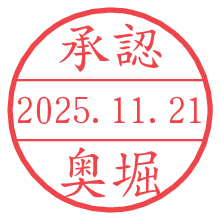 オプションの「電子透かし」をチェックし[生成]すると、見た目には分からないように、UNIXタイムスタンプを識別情報としてPNG形式の日付印に埋め込みます。 日付スタンプメーカーの使い方「部署」「名前」は最大8文字まで入力が可能です。「スタンプの色」を選択し、[生成]ボタン押下で印影画像が更新され、背景を透明に設定したPNG形式とPDF形式の印影画像がリンクからダウンロードできます。 オプションの「電子透かし」は、その性格上日付印ととても相性の良い付加サービスです。 別ページの「タイムスタンプと電子透かし」でも詳しく解説しますが、このオプションを追加することで、日付印が生成された日時に確かにその印が存在していることが証明されます。 ![]() 奥堀さんの電子印鑑が作れます。社内でのデータ書類閲覧確認用など、認印的な使い方のできる電子印鑑が作れます。 ![]() 古代文字で落款印が作れます。「落款スタンプメーカー」で作品を引き立たせる落款印が作れます。
