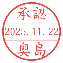 オプションの「電子透かし」をチェックし[生成]すると、見た目には分からないように、UNIXタイムスタンプを識別情報としてPNG形式の日付印に埋め込みます。 日付スタンプメーカーの使い方「部署」「名前」は最大8文字まで入力が可能です。「スタンプの色」を選択し、[生成]ボタン押下で印影画像が更新され、背景を透明に設定したPNG形式とPDF形式の印影画像がリンクからダウンロードできます。 オプションの「電子透かし」は、その性格上日付印ととても相性の良い付加サービスです。 別ページの「タイムスタンプと電子透かし」でも詳しく解説しますが、このオプションを追加することで、日付印が生成された日時に確かにその印が存在していることが証明されます。 ![]() 奥島さんの電子印鑑が作れます。社内でのデータ書類閲覧確認用など、認印的な使い方のできる電子印鑑が作れます。 ![]() 古代文字で落款印が作れます。「落款スタンプメーカー」で作品を引き立たせる落款印が作れます。
