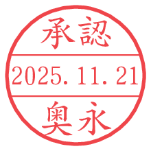 オプションの「電子透かし」をチェックし[生成]すると、見た目には分からないように、UNIXタイムスタンプを識別情報としてPNG形式の日付印に埋め込みます。 日付スタンプメーカーの使い方「部署」「名前」は最大8文字まで入力が可能です。「スタンプの色」を選択し、[生成]ボタン押下で印影画像が更新され、背景を透明に設定したPNG形式とPDF形式の印影画像がリンクからダウンロードできます。 オプションの「電子透かし」は、その性格上日付印ととても相性の良い付加サービスです。 別ページの「タイムスタンプと電子透かし」でも詳しく解説しますが、このオプションを追加することで、日付印が生成された日時に確かにその印が存在していることが証明されます。 ![]() 奥永さんの電子印鑑が作れます。社内でのデータ書類閲覧確認用など、認印的な使い方のできる電子印鑑が作れます。 ![]() 古代文字で落款印が作れます。「落款スタンプメーカー」で作品を引き立たせる落款印が作れます。