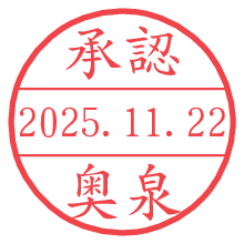 オプションの「電子透かし」をチェックし[生成]すると、見た目には分からないように、UNIXタイムスタンプを識別情報としてPNG形式の日付印に埋め込みます。 日付スタンプメーカーの使い方「部署」「名前」は最大8文字まで入力が可能です。「スタンプの色」を選択し、[生成]ボタン押下で印影画像が更新され、背景を透明に設定したPNG形式とPDF形式の印影画像がリンクからダウンロードできます。 オプションの「電子透かし」は、その性格上日付印ととても相性の良い付加サービスです。 別ページの「タイムスタンプと電子透かし」でも詳しく解説しますが、このオプションを追加することで、日付印が生成された日時に確かにその印が存在していることが証明されます。 ![]() 奥泉さんの電子印鑑が作れます。社内でのデータ書類閲覧確認用など、認印的な使い方のできる電子印鑑が作れます。 ![]() 古代文字で落款印が作れます。「落款スタンプメーカー」で作品を引き立たせる落款印が作れます。