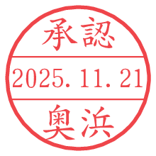 オプションの「電子透かし」をチェックし[生成]すると、見た目には分からないように、UNIXタイムスタンプを識別情報としてPNG形式の日付印に埋め込みます。 日付スタンプメーカーの使い方「部署」「名前」は最大8文字まで入力が可能です。「スタンプの色」を選択し、[生成]ボタン押下で印影画像が更新され、背景を透明に設定したPNG形式とPDF形式の印影画像がリンクからダウンロードできます。 オプションの「電子透かし」は、その性格上日付印ととても相性の良い付加サービスです。 別ページの「タイムスタンプと電子透かし」でも詳しく解説しますが、このオプションを追加することで、日付印が生成された日時に確かにその印が存在していることが証明されます。 ![]() 奥浜さんの電子印鑑が作れます。社内でのデータ書類閲覧確認用など、認印的な使い方のできる電子印鑑が作れます。 ![]() 古代文字で落款印が作れます。「落款スタンプメーカー」で作品を引き立たせる落款印が作れます。