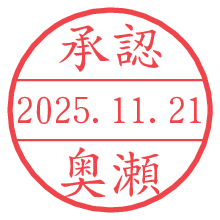 オプションの「電子透かし」をチェックし[生成]すると、見た目には分からないように、UNIXタイムスタンプを識別情報としてPNG形式の日付印に埋め込みます。 日付スタンプメーカーの使い方「部署」「名前」は最大8文字まで入力が可能です。「スタンプの色」を選択し、[生成]ボタン押下で印影画像が更新され、背景を透明に設定したPNG形式とPDF形式の印影画像がリンクからダウンロードできます。 オプションの「電子透かし」は、その性格上日付印ととても相性の良い付加サービスです。 別ページの「タイムスタンプと電子透かし」でも詳しく解説しますが、このオプションを追加することで、日付印が生成された日時に確かにその印が存在していることが証明されます。 ![]() 奥瀬さんの電子印鑑が作れます。社内でのデータ書類閲覧確認用など、認印的な使い方のできる電子印鑑が作れます。 ![]() 古代文字で落款印が作れます。「落款スタンプメーカー」で作品を引き立たせる落款印が作れます。
