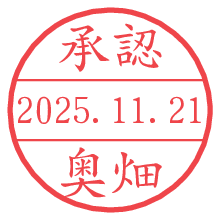 オプションの「電子透かし」をチェックし[生成]すると、見た目には分からないように、UNIXタイムスタンプを識別情報としてPNG形式の日付印に埋め込みます。 日付スタンプメーカーの使い方「部署」「名前」は最大8文字まで入力が可能です。「スタンプの色」を選択し、[生成]ボタン押下で印影画像が更新され、背景を透明に設定したPNG形式とPDF形式の印影画像がリンクからダウンロードできます。 オプションの「電子透かし」は、その性格上日付印ととても相性の良い付加サービスです。 別ページの「タイムスタンプと電子透かし」でも詳しく解説しますが、このオプションを追加することで、日付印が生成された日時に確かにその印が存在していることが証明されます。 ![]() 奥畑さんの電子印鑑が作れます。社内でのデータ書類閲覧確認用など、認印的な使い方のできる電子印鑑が作れます。 ![]() 古代文字で落款印が作れます。「落款スタンプメーカー」で作品を引き立たせる落款印が作れます。